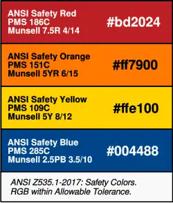 - ^ Furber, Brandon (19 October 2016). "How to Write ANSI Safety Colors in Your Specification". Electro-Mark Blog. Electro-Mark. Retrieved 2020-10-13.