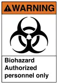 ![]() ![]() Example ANSI Z535 safety signs, for high voltage and Biohazard. | |