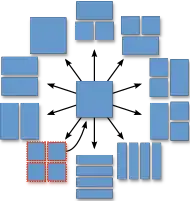 Frame content is separated into adjacent same-sized blocks referred to as superblocks. Similar to the concept of a macroblock, superblocks are square-shaped and can either be of size 128×128 or 64×64 pixels. Superblocks can be divided in smaller blocks according to different partitioning patterns. The four-way split pattern is the only pattern whose partitions can be recursively subdivided. This allows superblocks to be divided into partitions as small as 4×4 pixels.