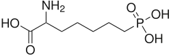 AP-7 is a selective NMDA receptor (NMDAR) antagonist that competitively inhibits the glutamate binding site and thus activation of NMDAR. It has anticonvulsant effects.[1]