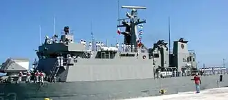 ARM Guanajuato (PO-153) is a Durango-class oceanic patrol vessel in the Mexican Navy with a 57mm main gun turret and a helicopter landing pad, currently primarily used for drug interception and maritime security in Mexican territorial waters. It is also armed with SA-18 Grouse missiles. Like other ships of this class, it was designed and built in Mexican dockyards, and is sometimes referred to as a compact frigate. It was named after the Mexican state of Guanajuato.[1]