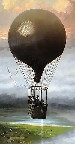 - ^ French photographer Nadar (1820–1910) famously captured the first aerial photographs from a tethered balloon in 1858, but the photos have been lost or destroyed. The first photos taken from a free-flying balloon were reportedly captured by a "M. P. Desmarets" in 1880,[18] five years after this painting.