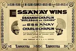 A Burlesque on Carmen is Charlie Chaplin's thirteenth film for Essanay Studios, originally released as Carmen on December 18, 1915. Chaplin played the leading man and Edna Purviance played Carmen. The film is a parody of Cecil B. DeMille's Carmen 1915, which was itself an interpretation of the popular novella Carmen by Prosper Mérimée.[1]
