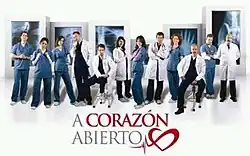 A Corazón Abierto is a Colombian telenovela produced by RCN Television in collaboration with Vista Production (first season only) and Disney Media Network Latin America.[1] Based on Shonda Rhimes' Grey's Anatomy, it is adapted and supervised by Colombian writer, Fernando Gaitán.[2] It marks the return of Sergio Basañez as a protagonist with the presentation of Iliana Fox as a protagonist. It also marks the return of Angélica Aragón to the television screen after 8 years of abstinence, since El Regreso, Juan David Burns as producer, and Raul Quintanilla as director. It was originally planned to air on Azteca 7, but was changed to Azteca 13, replacing Emperatriz, on 9 November 2011. It was filmed in Colombia for eight months, from February to October 2011. In December 2011, Azteca 13 executives extended the novela for another 58 episodes,[3] making a total of 138 episodes. 2012 episodes are filmed in Mexico, instead of Colombia. Elisa Salinas replaced her husband, Juan David Burns, as the producer in the second season. Filming of the second season ended on 17 April. Due to successful public reception, the producers plans for another season. The executives of Azteca discussed with Disney Media Networks for a third season, but later cancelled the idea.[4]