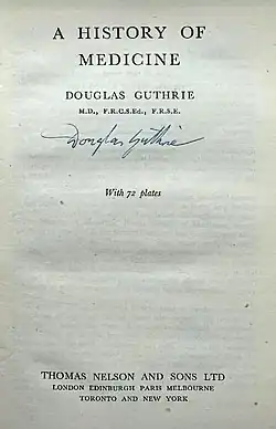 A History of Medicine is a book by Scottish surgeon Douglas Guthrie that was published in 1945 by Thomas Nelson and Sons. It came to wide attention after it was reviewed by the playwright George Bernard Shaw and marked the beginning for Guthrie of a new career in teaching the history of medicine.[1]