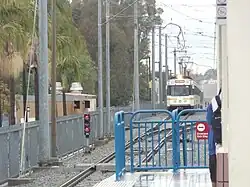 Due to this, Metro started in the early 2000s to install four-quadrant gates at crossings where the A Line shares the right of way with freight rail between Willowbrook station and Artesia station. The gates prevent drivers from going around lowered gates.[47] Metro also improved the safety of the A Line's pedestrian crossings by 2018.[48]