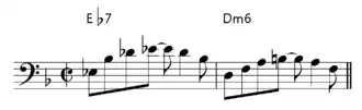 The complex ostinato bass line in the "A section" is notable for avoiding the standard walking bass pattern of straight quarter notes, and the use of oscillating half-step-up/half-step-down chord changes (using the Sub V, a tritone substitute chord for the dominant chord) gives the song a unique, mysterious feeling. The B section is notable for having an unresolved minor II-V, since the chord progression of the B section is taken from the B section of the standard "Alone Together", causing the V chord to lead back into the Sub V of the A section.