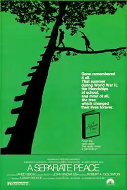 A Separate Peace is a 1972 American drama film directed by Larry Peerce. It was adapted by John Knowles and Fred Segal (brother of actor George Segal) from Knowles's best-selling novel, about the conflicted friendship of two boarding-school students. The film stars Parker Stevenson and John Heyl.