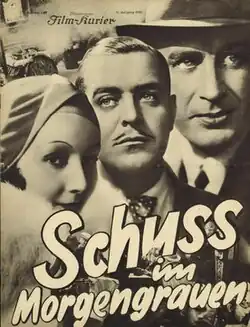 A Shot at Dawn (German: Schuß im Morgengrauen) is a 1932 German crime film directed by Alfred Zeisler and starring Ery Bos, Genia Nikolaieva and Karl Ludwig Diehl. It was based on the play The Woman and the Emerald by Harry Jenkins and recounts a jewel theft.[1] It was shot at the Babelsberg Studios in Potsdam with sets designed by the art directors Willi Herrmann and Herbert O. Phillips. A separate French-language version Coup de feu à l'aube was also produced.