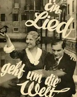A Song Goes Round the World (German: Ein Lied geht um die Welt) is a 1933 German drama film directed by Richard Oswald and starring Joseph Schmidt, Viktor de Kowa and Charlotte Ander.[1] It was shot at the Johannisthal Studios in Berlin with sets designed by the art director Franz Schroedter.[2] An English-language version of the film, My Song Goes Round the World, was made by British International Pictures, also directed by Richard Oswald. The film serves as a semi-biopic of Joseph Schmidt, who appears in it himself. A 1958 film of the same name was also a biopic of Schmidt, who was by then dead.