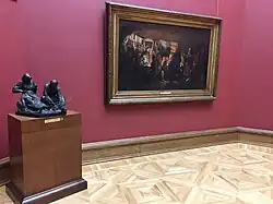 The painting A Sorcerer Comes to a Peasant Wedding and Family Separation was also included in the exposition of the All-Russian Industrial and Art Exhibition of 1882, held in Moscow.[1][47] In 1971-1972 the canvas took part in the exhibitions "Peredvizhniki in the State Tretyakov Gallery" (Moscow) and "Domestic Painting of the Peredvizhniki" (Leningrad, Kyiv, Minsk), which were held on the occasion of the 100th anniversary of the Society.[1] In 1983-1984, the painting was exhibited at an exhibition in Moscow dedicated to the 225th anniversary of the Academy of Arts.[46]