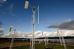 A Sound Garden is an outdoor public art work in Seattle, Washington, United States. It is one of six such works on the National Oceanic and Atmospheric Administration (NOAA) campus, which lies adjacent to Warren G. Magnuson Park on the northwestern shore of Lake Washington.[1][2] Designed and built by sculptor Douglas Hollis from 1982 to 1983, the sound sculpture is composed of twelve 21-foot (6.4 m) high steel tower structures, at the top of each of which hangs an organ pipe attached to a weather vane that produces soft-toned sounds when stirred by the wind.[1][2][3]
