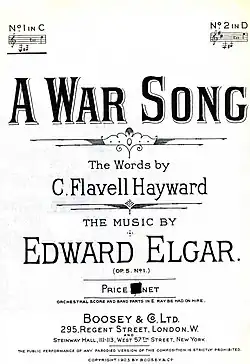 "A War Song", originally called "A Soldier's Song", was a poem written by C. Flavell Hayward[1] and set to music by the English composer Edward Elgar in 1884.