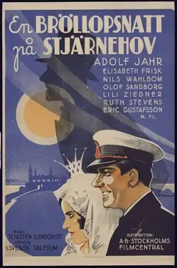 A Wedding Night at Stjarnehov (Swedish: En bröllopsnatt på Stjärnehov) is a 1934 Swedish comedy film directed by Torsten Lundqvist and starring Adolf Jahr, Elisabeth Frisk and Ruth Stevens.[1] It was shot at the Kungsholmen Studios of Nordisk Tonefilm in Stockholm and on location around Södertälje and Trosa. The film's sets were designed by the art director Bertil Duroj. It is now considered to be a lost film.[2]