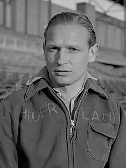 De Jong became a member of ADO at the age of eight; At 16, he first appeared in stadium Elf der Haager.[2] Twice in a row, 1942 and 1943, this team was the Dutch champion, alongside the left defender as de Jong, including Gerrit Vreeken, Herman Choufoer (as team captain) and André Roosenburg, and later ADO coach and football champion Rinus Loof.[3] He remained faithful to the ADO for 18 seasons and the club appointed him as an honorary member. After finishing his active career, he worked as a trainer at HBS Craeyenhout and Quick (H).