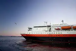Ålesund is a port of call for passenger and freight vessels travelling between Bergen, Kingston upon Hull, Newcastle, Hamburg, and Trondheim, including the Hurtigruta (Norwegian Coastal Express) cruise ships, which arrive in Ålesund twice a day.[5]