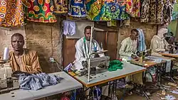 The city is an important cattle raising centre.[2] The principal camel market in the country for exports,[18][19] the manufacture of camel-hair blankets is one of the industries of the area.[2] Abéché market is a thriving regional market, also known for its vegetables and fruit stalls, with onions and lettuce sold in abundance,[20] and spices, textiles, handmade crafts,[21] pottery and jewelry.[3]