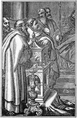 The Mongols began their siege of the city on 29 January 1258. On 10 February, al-Musta'sim agreed to meet with Hulagu, who demanded that the caliph order the defenders to stand down and come out of the city in exchange for mercy. The caliph complied, but the Mongols slaughtered the population and then began the sack of the city on 13 February.[133] Contemporary accounts describe destruction, looting, rape, and killing on a massive scale over many days, with hundreds of thousands killed and the city reduced to near-empty ruins,[134] though some, like the Christian and Shia communities, were spared.[135][131] The Mongols feared rumours that a supernatural disaster would strike if the blood of al-Musta'sim, a direct descendant of Muhammad's uncle and part of a dynasty that had reigned for five centuries, was spilled. As a precaution and in accordance with a Mongol taboo against spilling royal blood, Hulagu had al-Musta'sim wrapped in a carpet and trampled to death by horses on 20 February 1258.[136][137][138][139] The caliph's immediate family was also executed, with the lone exceptions of his youngest son who was sent to Mongolia and a daughter who became a slave in the harem of Hulagu.[136]