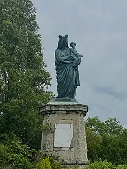 A statue known as the Black Virgin is located on the grounds of the Abbey, overlooking the estuary of the Seine. The story of its creation goes back to the Franco-Prussian War of 1870–1871, when the Prussian army almost occupied Le Havre. The Association of Christian Mothers[9] (under Madame Foache) vowed to erect a statue of the Virgin in gratitude for the city not being invaded. In 1875, a six-meter-tall bronze statue of the Virgin designed by Mr. Robert and Mr. Rousse[10] l was installed. The name of the statue comes from its dark patina, as the bronze was not covered with a layer of silver due to a lack of financial means. During the Second World War, the statue was severely damaged; thus, a new identical one was cast and erected in the same place in 1985, funded by the citizens and the City of Le Havre.