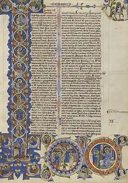Also known as MS.107, or 2011.23,[1] the Abbey Bible is a single-volume Bible, with intricate imagery and marginal commentaries. Although the Bible was the principal textbook for students during the mid-thirteenth and fourteenth centuries,[2] this is a "luxury" manuscript for the altar, rather than study. All evidence suggests that it was created for a Dominican monastery at the cathedral at Ascoli Piceno, in Italy.[1] During this time, Bologna was an important center for the creation of Gothic illuminated Bibles. The Abbey Bible is one of the most prestigious examples of an illuminated manuscript produced in Northern Italy, and highlights the Byzantine style influences.
