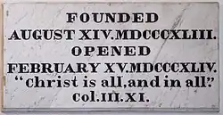 The congregation was formed during the Disruption of 1843. Its foundation stone was laid in August 1843 and the church opened on 15 February 1844. The church building,[5] its manse[6] and grounds[7] are directly west of the Glebe Park[8] on Abbeygreen. The congregation of Abbeygreen was formed out of the Parish Church of Lesmahagow by secession from the Church of Scotland in 1843. Lesmahagow Old Parish Church was built, in its present form,[9] in 1804,[10] at the site of the medieval Lesmahagow Priory.[11]