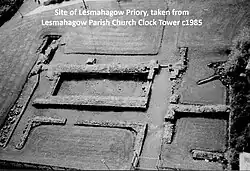 Documented history of Christianity in the Lesmahagow area may be traced back to, at least, the 12th century with the establishment of a church dedicated to Saint Machutus or (Saint Malo).[12][13] The first Prior of Lesmahagow is recorded as Osbert,[14] who became Abbot of Kelso in 1180. The dedication of the priory to Saint Machutus, or Saint Machute as he is referred to locally, remained after the gift of "the Church and lands of Lesmahagow" by King David I of Scotland in 1144 to the Tironensian Order of Benedictine monks who established Kelso Abbey. The remains of Lesmahagow Priory or "Abbey", may still be seen today, adjacent to Lesmahagow Old Parish Church. It is from this "Abbey" that both Abbeygreen, the main road through Lesmahagow, and Abbeygreen Church derive their names.