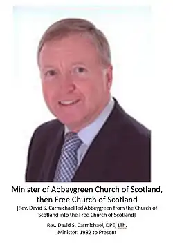 | 2020 | Rev. David S. Carmichael | Minister and congregation of Abbeygreen accepted into the Free Church of Scotland | 31/3/2020 |