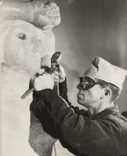 ![]() In studio, carving Wingless Victory in Chicago, Illinois, 1950.  | |