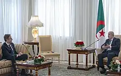 On 18 December 2022, Tebboune met with French Minister of Interior Gerald Darmanin in Algiers.[57][58] They discussed bilateral relations, migration, security, and ended the visa issue with France which had limited the number of visas issued to Algerians since September 2021.[59][60]