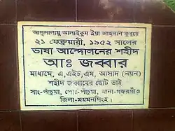 Abdul Jabbar (11 October 1919 – 21 February 1952) was a protester who was killed during the Bengali language movement in 1952 that took place in the erstwhile East Pakistan (currently Bangladesh).[1][2] He is considered a martyr in Bangladesh.[2][3]