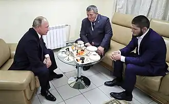 Nurmagomedov and his son Khabib meeting Russian President Vladimir Putin four days after the latter's win against Conor McGregor