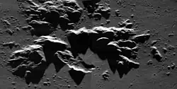 An irregular depression within the central peak complex is evidence of explosive volcanism.[3]
