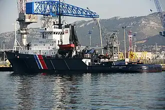 The Abeille Flandre (French pronunciation: [abɛj flɑ̃dʁ] ⓘ) was an ocean tug, in service with the French Navy from December 1979 until 2022. She was owned by the French private company Abeilles International.