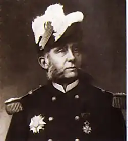 He took part in the Crimean War, where he was wounded and was made a Knight of the Légion d'honneur.[3] In 1868, he commanded the corvette Dupleix during the Japanese revolution. On 8 March 1868, a skiff sent to Sakai was attacked by samurai retainers of the daimyō of Tosa; 11 sailors and a midshipman were killed. The attack and French demands for punishment of the samurai involved became known as the Sakai incident.[4] In 1870, he commanded a floating battery on the Rhine river during the Franco-Prussian War.[3] As a rear admiral, he was in charge of the 1880 pacification of the Marquesas Islands, which had been conquered by his uncle Abel Aubert du Petit-Thouars forty years before.[3]