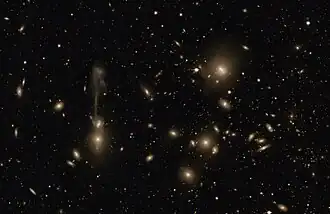 The cluster also contains NGC 3552, NGC 3553, NGC 3554, NGC 3558 and NGC 3561.