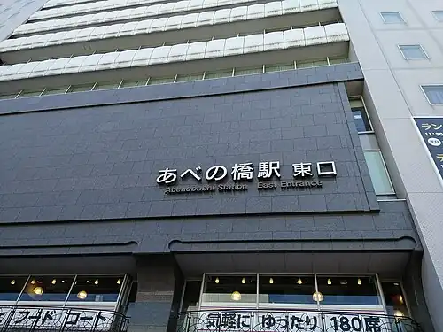Ōsaka Abenobashi Station (大阪阿部野橋駅, Ōsaka-Abenobashi-eki; station number: F01) is a railway station on Kintetsu Minami Osaka Line in Abeno-ku, Osaka, Japan. The station is also called "Abenobashi Station" (あべの橋駅).