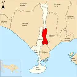 Abiansemal is a district (kecamatan) in the Badung Regency of Bali, Indonesia. It covers an area of 69.01 km2, and had a population of 88,144 at the 2010 Census[1] and 98,904 at the 2020 Census.[2] The capital of the district is Abiansemal.