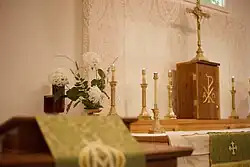 Abingdon Glebe House is a historic home located near Gloucester, Gloucester County, Virginia. It was built around 1700, and is T-shaped brick structure with one-story hipped roof end pavilions flanking the central portion of the house. The central portion and rear ell are topped by steep gable roofs. It was extensively renovated about 1954. The house and surrounding glebe lands were owned by Abingdon Parish until they were confiscated by legislative act in 1802 as part of the Disestablishment.[3] It was acquired by William Riddick of Gloucester in the 1980s, and was bequeathed to St. James On-the-Glebe Anglican Church, a parish of the Anglican Province of America, after Riddick's death in 2006.[4]