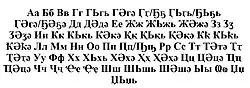 - ^ The letters are listed per Hewitt, George (1998). The Abkhazians. St. Martin's press. p. 172.. In Chirikba, Viacheslav A. (2003). Abkhaz. LINCOM GmbH. p. 15. ISBN 3895861367. "Ь" and "Ә" are included as separate letters.