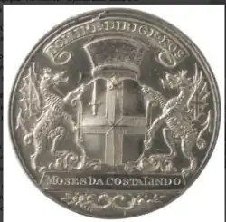 The first medal issued under the 1697 Act. This medal belonged to Elias Lindo, one of the brokers originally sworn in 1697, and is currently in the collection of the Museum of London.