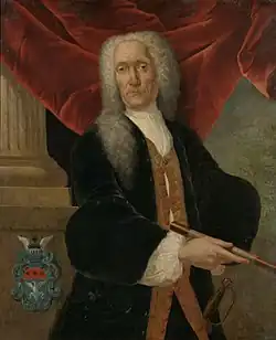 Anthony Patras (1718-1764), born in Geneva, was a nephew of governor Abraham Patras. In 1734 Anthony arrived in Batavia in the Dutch East Indies. When his uncle died the young man inherited his immense fortune, the collection of books, and art. In 1738 he married a daughter of Isaac van Schinne, an opperhoofd in Deshima and member of the Council of India.[5] After the 1740 Batavia massacre he returned to Holland. In 1743 he tried to become a member of Sloten's vroedschap, which refused to appoint him. After two years he suddenly became burgomaster of the Frisian town, succeeding Onno Zwier van Haren. He was a States General representative for this small city until his early death. (In Wijckel he bought Meerenstein which was built for Menno van Coehoorn.) Patras died early and probably hardly lived in his new mansion, nowadays known as Lange Voorhout Palace. His widow was forced to sell the property in 1778.[6]