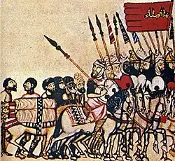 Almohad troops either advancing towards the battle or returning from a raid on enemy territory with the booty.