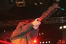 Mesias then suffered an injury outside TNA, leaving Mitchell to enlist the aid of Raven and Black Reign to feud with Abyss and Rhino. The four battled at Bound for Glory on October 14 in a Monster's Ball match, with Abyss picking up the victory with a pinfall over Raven.[19] Following the event, Abyss battled against Mitchell and Black Reign, with Black Reign and Abyss attacking each other on several occasions.[2] Black Reign, after an attack by Abyss, challenged Abyss to a Shop of Horrors match at Genesis on November 11, which Abyss accepted and won.[2] After the match, Abyss was attacked and thrown off the stage by Black Reign and a mysterious wrestler, later identified as Rellik.[2] Following the event, Abyss continued to feud with Black Reign and Rellik and brought in Rhino to help him even. This rivalry led to a Match of 10,000 Tacks with Abyss and Rhino teaming up to take on Black Reign and Rellik booked for Turning Point on December 2. Rhino could not make the event due to a legitimate neck injury caused by Rellik during a match on Impact!, so Abyss chose Raven as his new partner.[2] Abyss and Raven won the match after Abyss performed the Black Hole Slam on Rellik on the thumbtacks.[2]