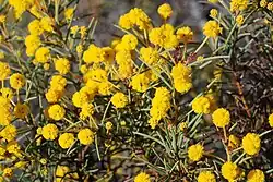 - Acacia chapmanii subsp. australis R.S.Cowan & Maslin[7] has stipules that are not spiny, phyllodes subterete to flat, and directed upwards, the ends gently turned downwards, heads with 24 to 27 flowers and flowering in August and September.[8][9]