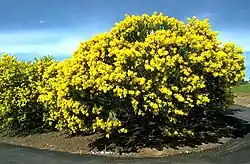 Acacia cultriformis, known as knife-leaf wattle, dogtooth wattle, half-moon wattle or golden-glow wattle,[2] is a species of flowering plant in the family Fabaceae and is endemic to eastern Australia. It is widely cultivated, and has been found to have naturalised in Asia, Africa, North America, New Zealand and South America.[3] A. cultriformis grows to a height of about 4 m (13 ft) and has triangle-shaped phyllodes. The yellow flowers appear from August to November in its natural range. Its attractive foliage and bright flowers make it a popular garden plant.