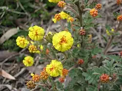 Acacia moirii, commonly known as Moir's wattle,[1] is a subshrub which is endemic to the south-west of Western Australia.[2] It grows to between 0.15 and 0.6 metres high and has densely hairy leaflets.[2] The globular golden-yellow flower heads appear from May to August, followed by hairy seed pods which are around 4 cm long and 5 to 6 mm wide.[2]