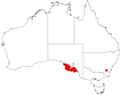 It is native to areas on the Eyre Peninsula, southern Yorke Peninsula and Fleurieu Peninsula of South Australia where it is found among sand dunes growing in sandy soils.[2]