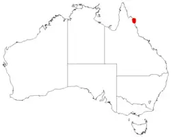 It is found along a narrow stretch of the north eastern coast of Queensland with a length of around 50 km (31 mi)[1] from around Cooktown in the south to Cape Flattery in the north where it is situated among quaternary sand-dunes, often as dense stands as a part of scrub-land[2] or heath-land communities where it is often associated with Corymbia intermedia.[1]