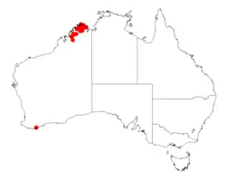 It is native to an area in the Kimberley region of Western Australia[1] where it is found in the catchment are of the Prince Regent River and east of Walcott Inlet and also in the catchment area of the Drysdale River where it is situated in a variety of habitat mostly around sandstone as a part of Eucalyptus woodland communities.[2]