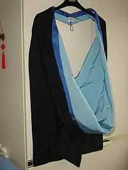 All graduates wear a hood in the full shape. These are either partially or fully lined with light blue silk which is the university colour and trimmed with a ribbon the colour of which indicates the graduate's faculty.